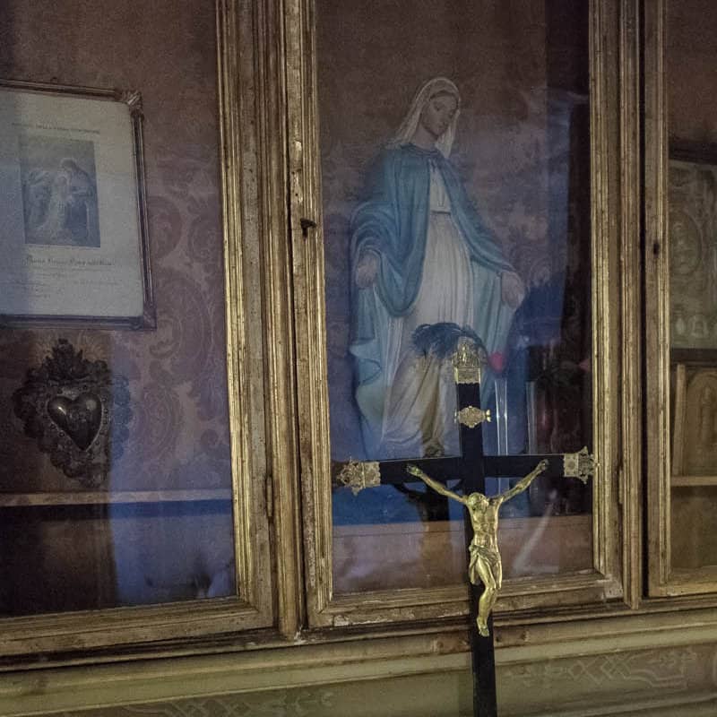 Il piano nobile conserva ancora una cappella gentilizia dai pavimenti intarsiati in olmo e noce ed uno straordinario apparato stucchivo di Carpoforo Mazzetti detto il Tencalla.